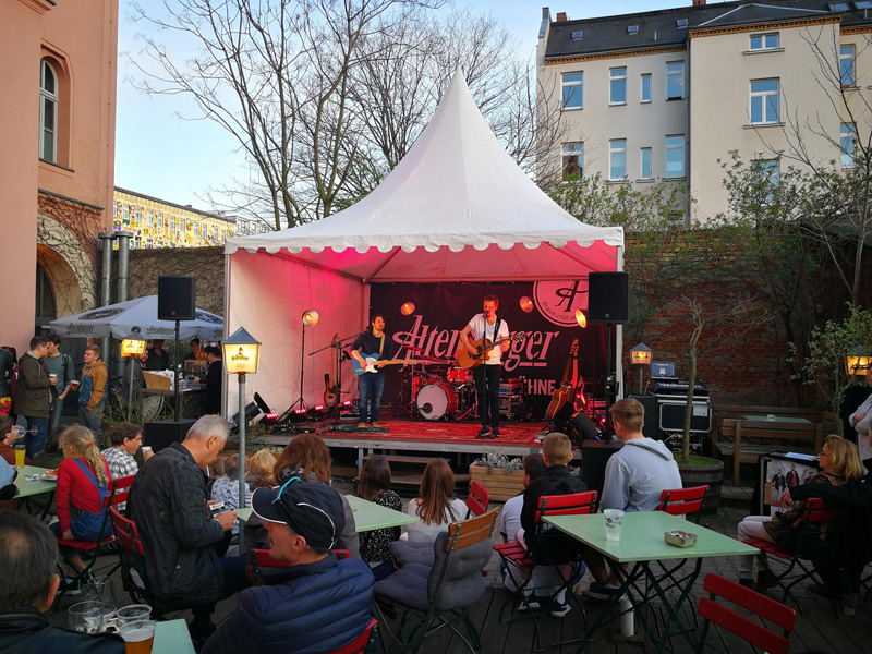 Aber so ganz sollte der Outdoor Gedanke nicht sterben. Genau hier unterstützte die Altenburger Brauerei tatkräftig! Neben einer umfangreichen Lieferung von leckerem Altenburger Hell stellte die Brauerei eine eigene Bühne im Biergarten des Volkshauses und ermöglichte so weiteren Bands, das Publikum vor Ort zu begeistern.