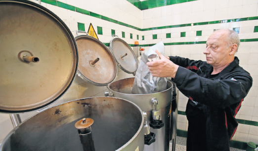 Zurück zur Gerste. Diese kommt vom Feld in die Mälzereien. „Die alte Mälzerei in Altenburg wurde leider verkauft“, sagt Brauereichef Leikeim, „sonst würden wir heute wohl auch unser eigenes Malz herstellen.“ So bezieht seine Brauerei ihr Malz aus drei regionalen Mälzereien in Erfurt, Heidenau und Kulmbach. Damit aus Getreide Malz wird, muss es dort in mehreren Schritten bearbeitet werden. Zunächst wird es zum Keimen gebracht. Dieser Vorgang wird allerdings abgebrochen. Anschließend wird das Korn geröstet. „Das ist ein wichtiger Vorgang“, unterstreicht der Brauer, denn je dunkler das Korn geröstet werde, desto röstaromatischer sei es. Danach entscheidet sich in der Brauerei auch, welche Sorte Bier gebraut wird. / elo