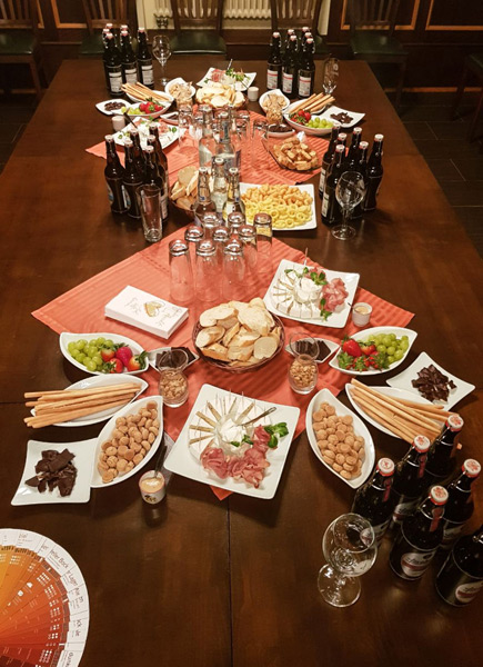 Auch kulinarisch wurde den Teilnehmern des Bier-Tastings einiges geboten. Bastian Leikeim und David Sperling kombinierten die Geschmacksvarianten der Altenburger Biere ideal mit erlesenen Käsesorten, Obst, Schinken und Snacks – so konnten die Teilnehmer ein rundum gelungenes Geschmackserlebnis genießen.