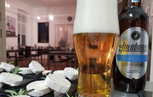 15 wissbegierige Teilnehmer ließen sich von den erfahrenen Biersommeliers David Sperling und Bastian Leikeim in die faszinierende Welt des Bieres entführen. Pünktlich um 19 Uhr startete die Reise: Die Gäste konnten unter Anleitung die schmackhaften Biersorten der Altenburger Brauerei verkosten. Zur Auswahl standen das Premium-Pils, Bockbier, Schwarzbier, Hell sowie Festbier. Zur Feier des Tages konnten die Anwesenden sogar exklusiv die Sonderedition „Pale Ale“ probieren. Diese wurde ursprünglich für den Biergeburtstag im vergangenen Jahr eingebraut und ist nur noch limitiert verfügbar.